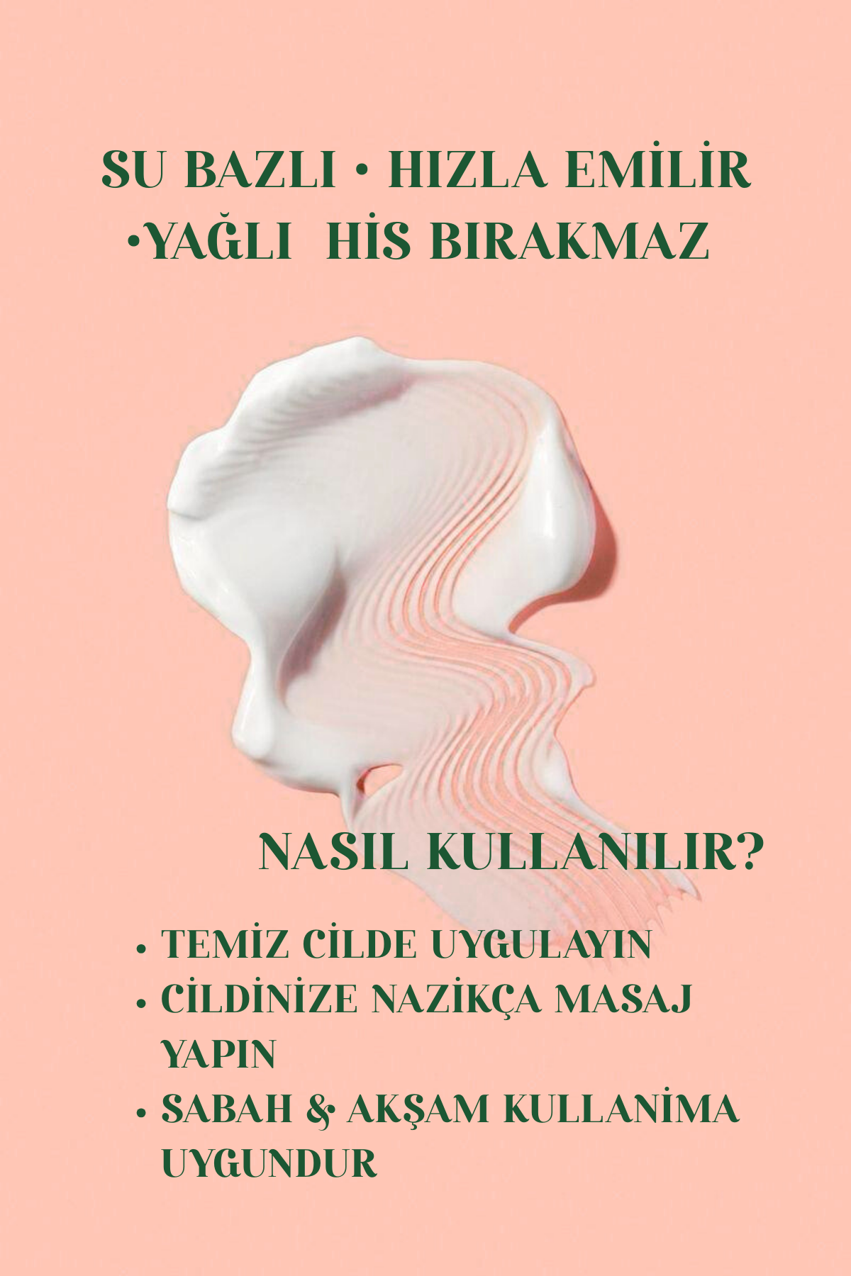 - Sabah akşam rutininde, bir fındık tanesi kadar ürünü nemli cildinize, serum uygulamasından sonra, nazikçe uygulayınız.